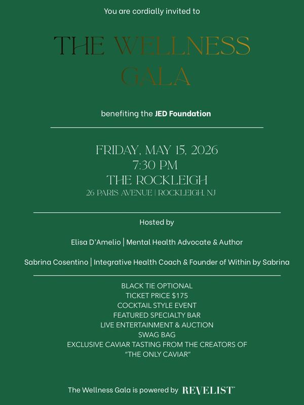 The Wellness Gala is a privately organized benefit event and unincorporated organizing entity coordinated in the State of New Jersey. The Wellness Gala and its organizers are not acting as an agent, affiliate, representative, or fiscal sponsor of The Jed Foundation, and the The Jed Foundation is not a party to this Agreement. The Wellness Gala is not a federally recognized tax-exempt organization under Section 501(c)(3) of the Internal Revenue Code. Contributions are not tax-deductible as charitable contributions for federal, New Jersey state, or local tax purposes. The Wellness Gala and it’s organizers make no representations, warranties, or guarantees regarding tax treatment or deductibility. Sponsorships and ticket purchases are non refundable.